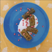 יוגורט רימונים, עליו מניחים את הדולמה ומפזרים מלמעלה גרעיני רימון.